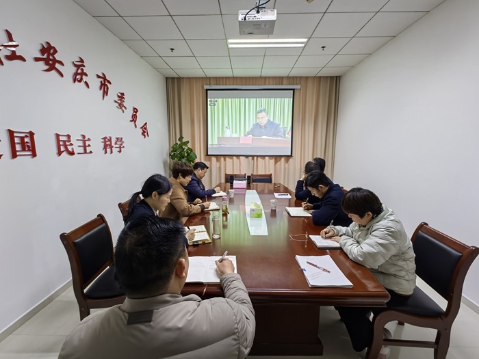 3月17日,九三学社安庆市委员会召开理论学习中心组学习(扩大)会。会前,与会人员通过视频会议系统集中参加九三学社中央2026年全国两会精神传达学习会暨社中央第十三期政治辅导“网络课堂”。安庆市政协副主席、九三学社安庆市委会主委程玉梅主持会议,副主委吴学勤、王远志、开喆以及机关全体人员参加。