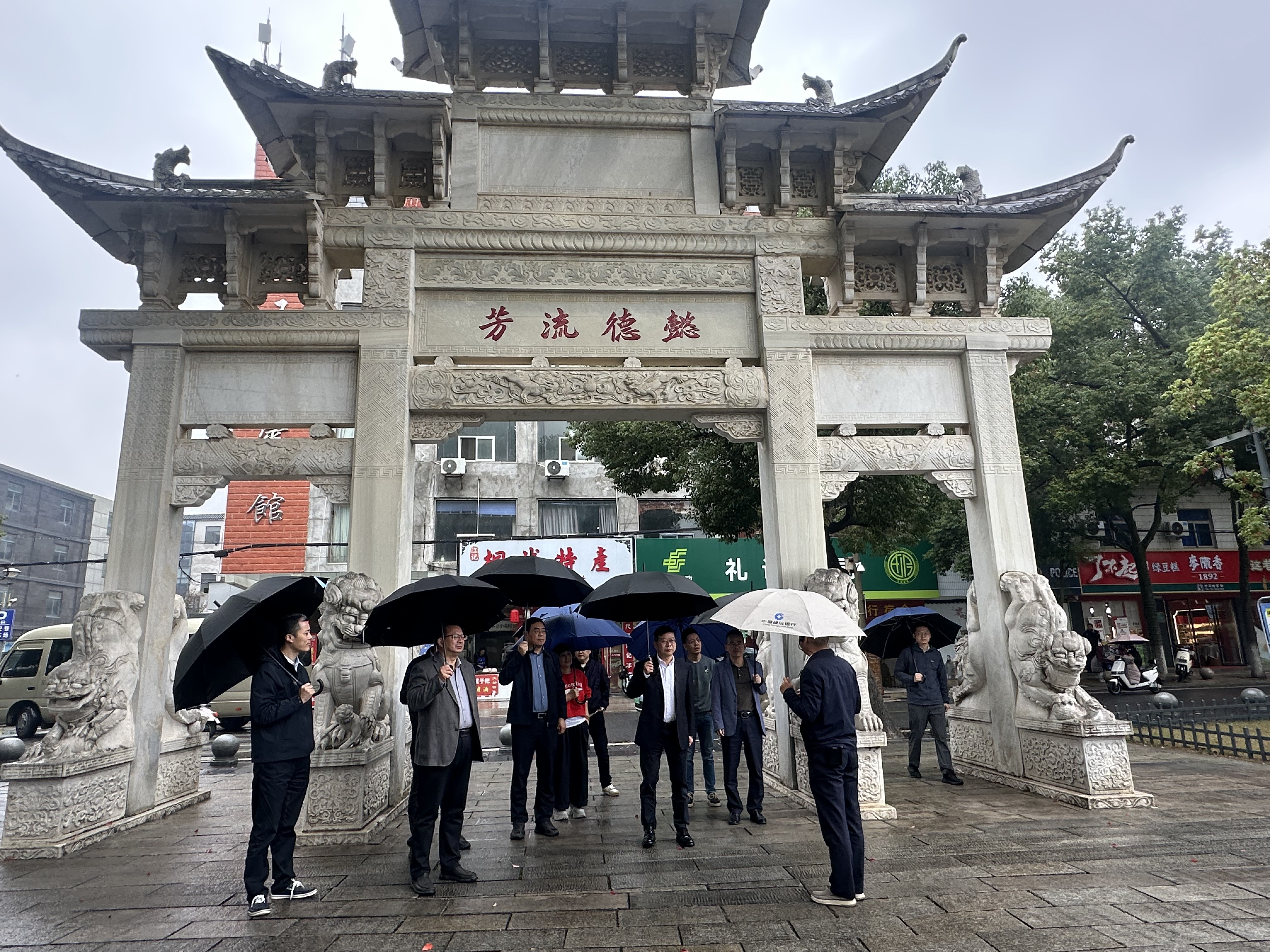 调研组一行先后赴新渡镇老梅树街、六尺巷、嬉子湖镇嬉子桐话等地,认真聆听桐城历史文化传承发展情况介绍,实地考察文旅项目运营模式、客源引流及带动村民增收情况,详细了解桐城市打造“生态+文旅+乡村”融合业态的具体做法。